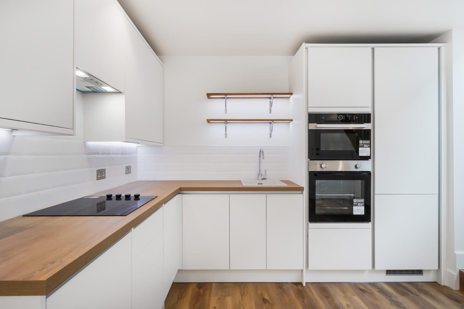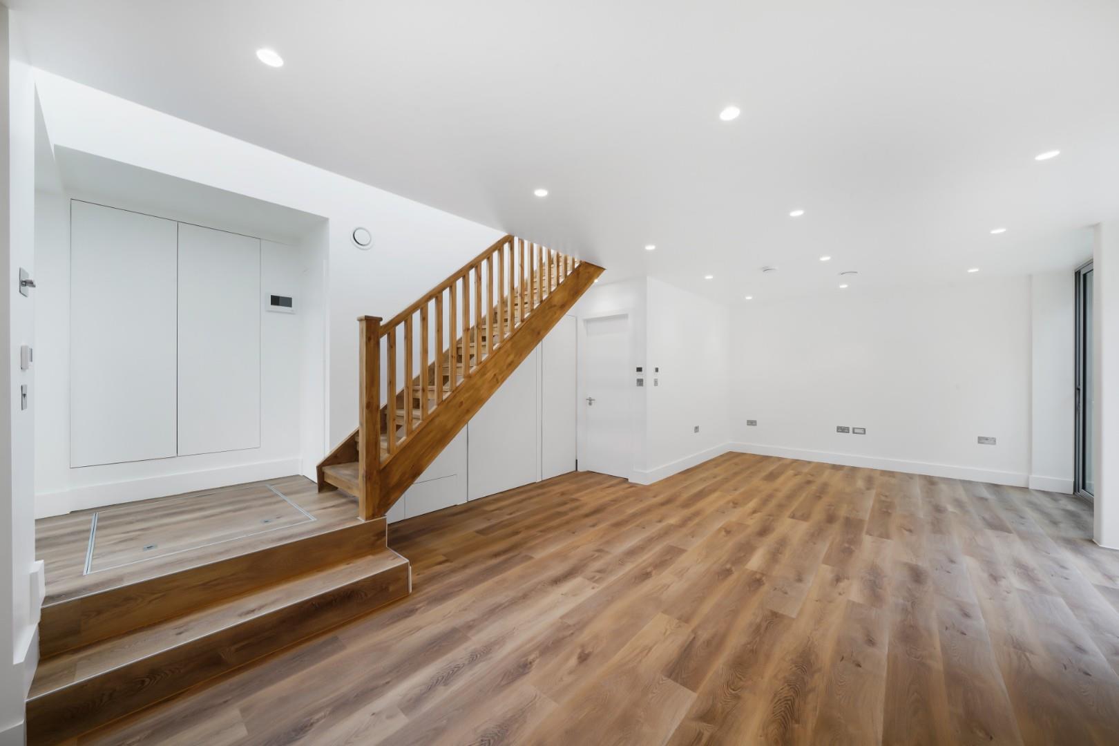 A large open-plan reception and fully integrated kitchen form the heart of the home. Natural light floods the space through well-placed windows, while ample built-in storage ensures you’ll always have a tidy, clutter free interior.