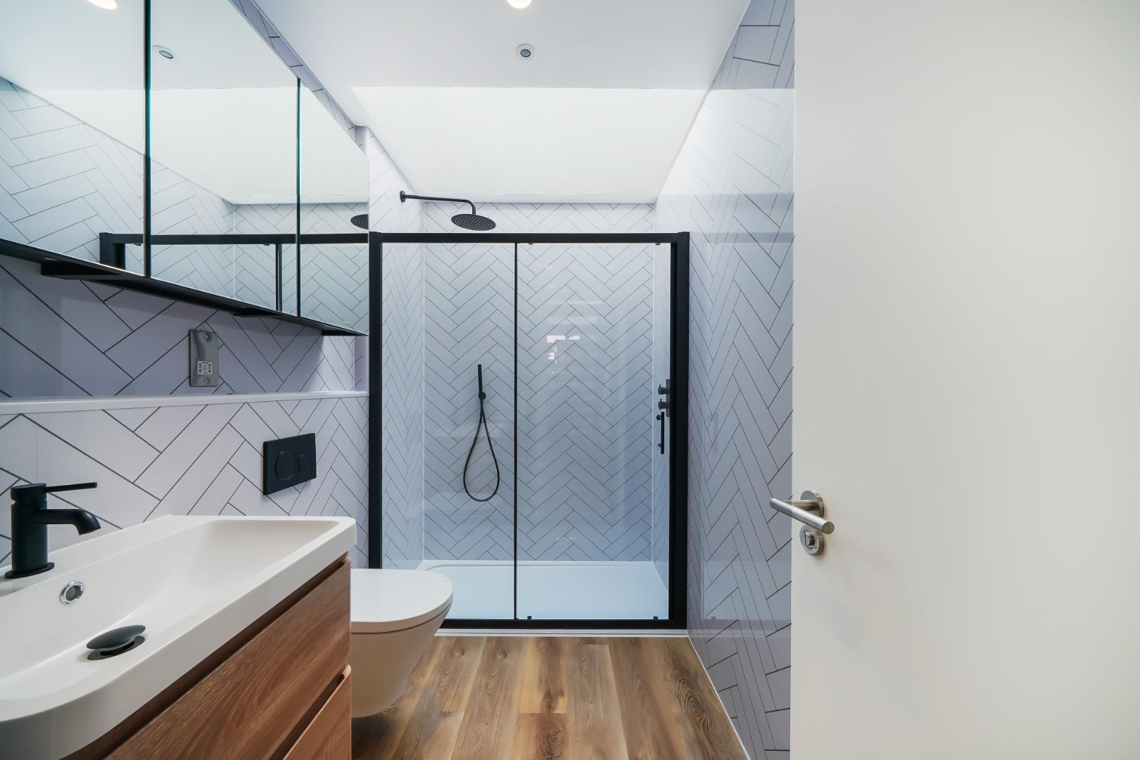 The luxury continues with a stylish walk-in shower on the ground floor and a private patio.