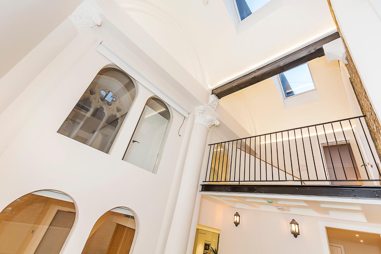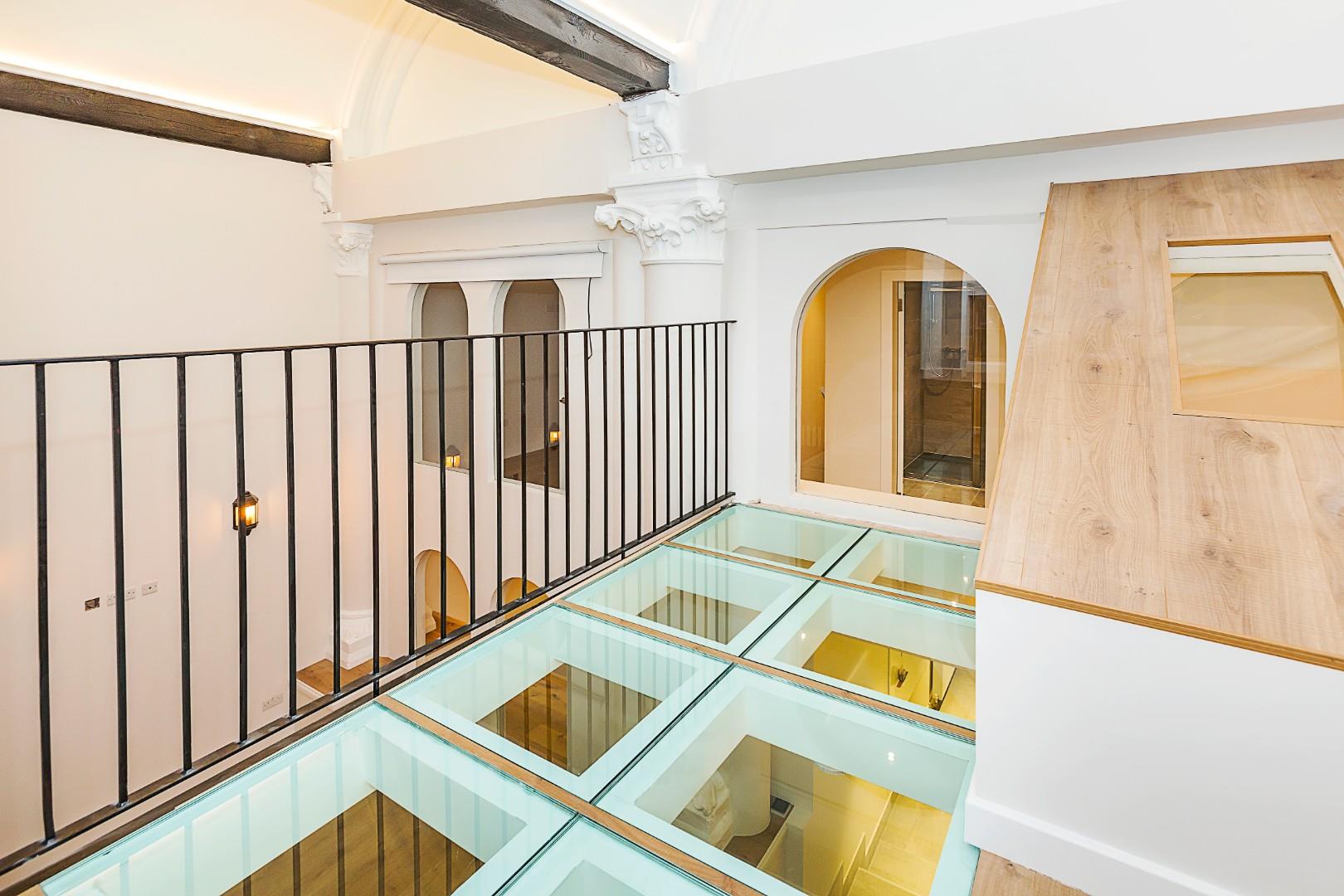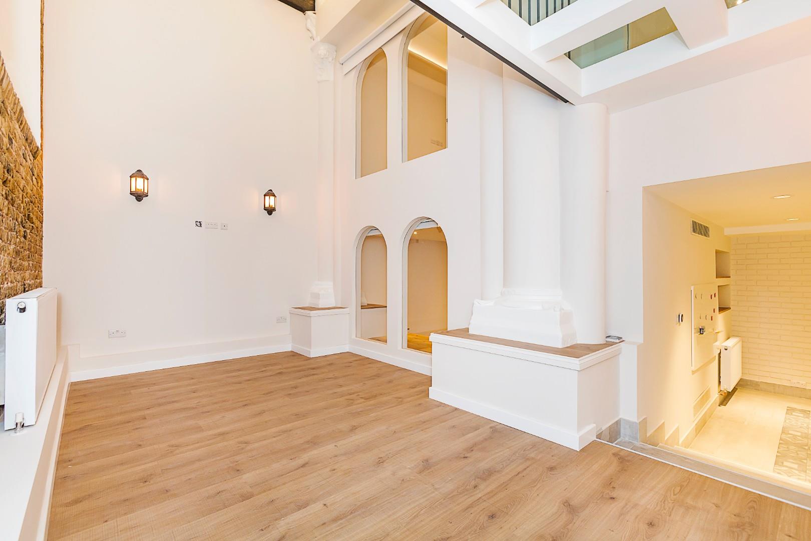 Occupying part of the ground and first floor of this stunning converted church is this unique four bedroom apartment. This architecturally dynamic space offers tenants four bedrooms, with three bathrooms, a beautifully appointed kitchen/dining room, a spacious lounge area, with many rooms and hallways have high ceilings and exposed brickwork throughout. The light wells offer an abundance of natural light with the mezzanine and glass roof/walkway adding something a little different to this cleverly converted property. Situated on Camden Park Road this apartment is well situated for easy access to many green spaces and transport links.