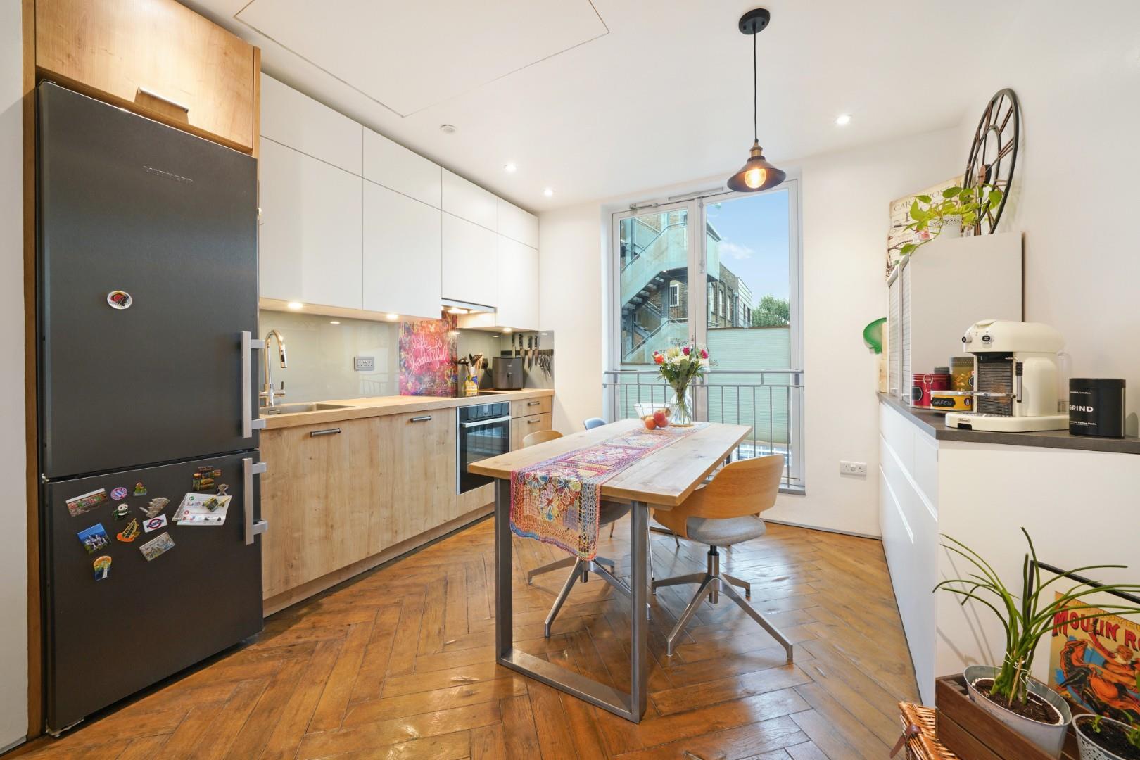 The open plan reception and kitchen, complete with high end appliances, form the centre of the home, with excellent natural light creating an inviting and versatile area for day-to-day living. The property enjoys its own private front door, enhancing the sense of independence and privacy that is hard to find in such a central location.