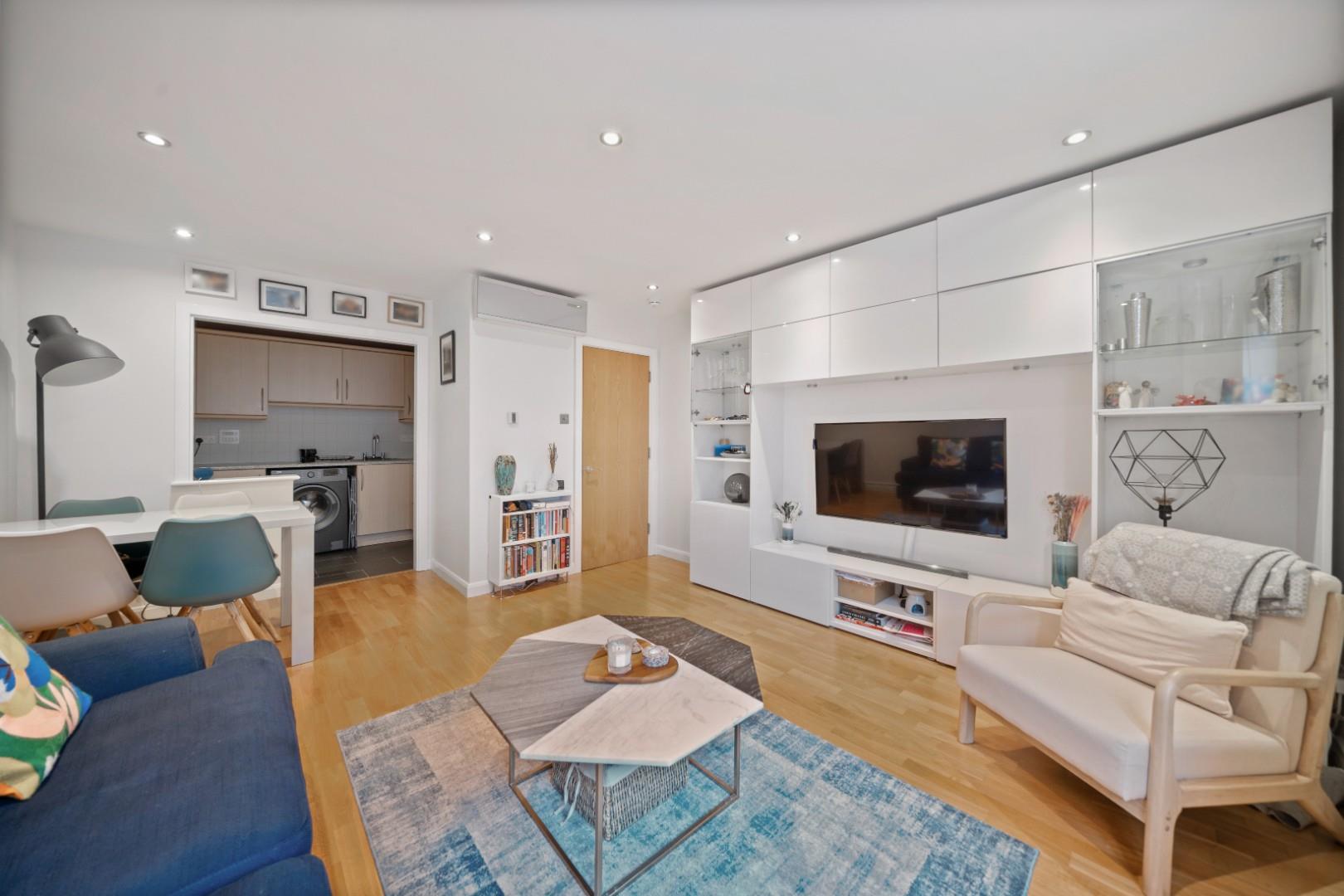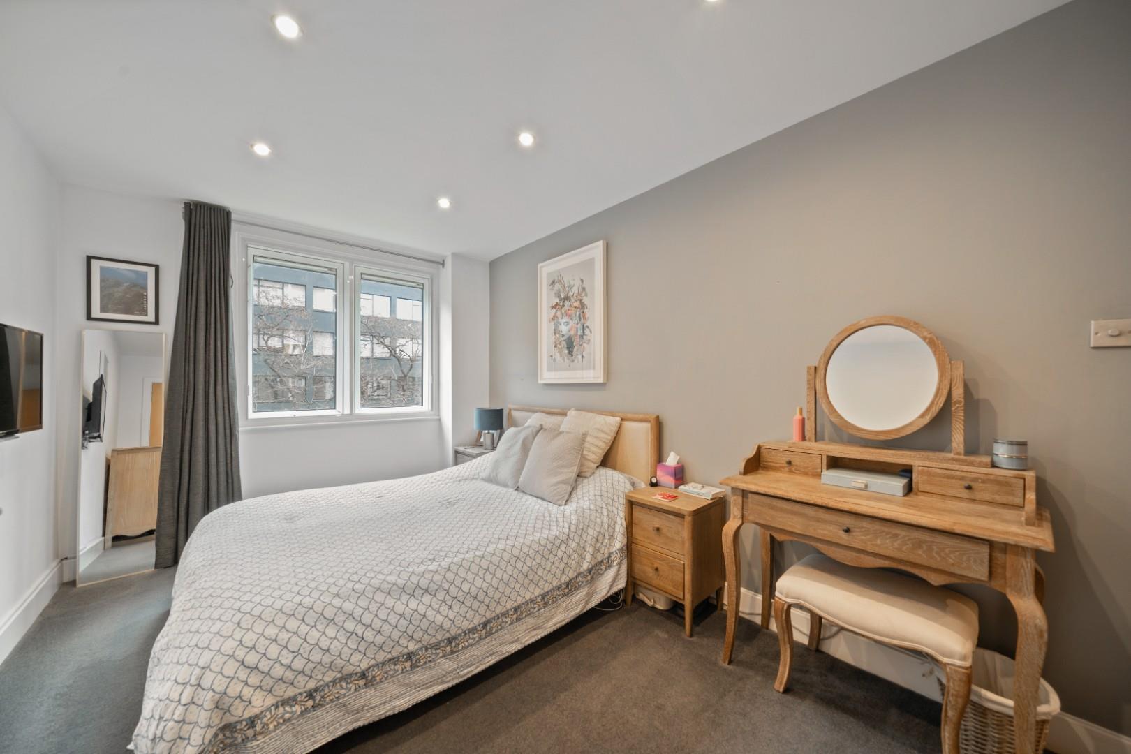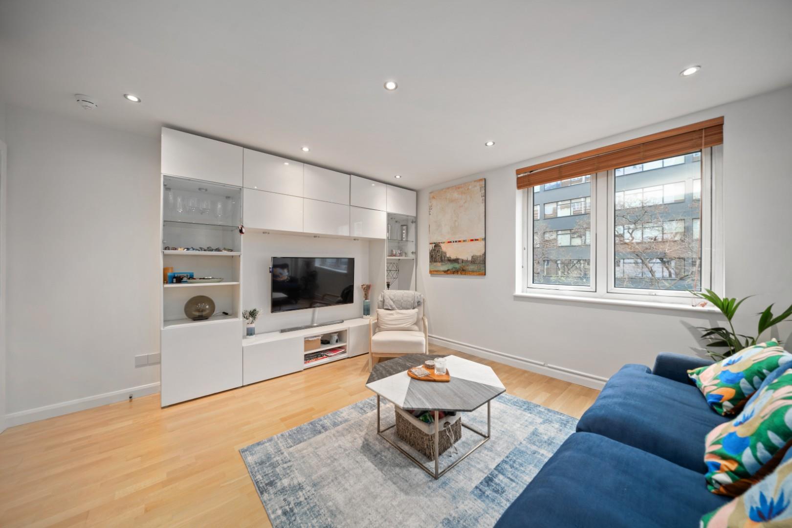 This sought-after building offers 24-hour concierge, lift access and a large communal roof terrace with stunning, panoramic views of London. The apartment has been finished to a high standard, and features wood flooring, modern and neutral décor throughout, plenty of natural light, high-end furnishings, a contemporary kitchen, and bathroom with corner shower, and entry system.