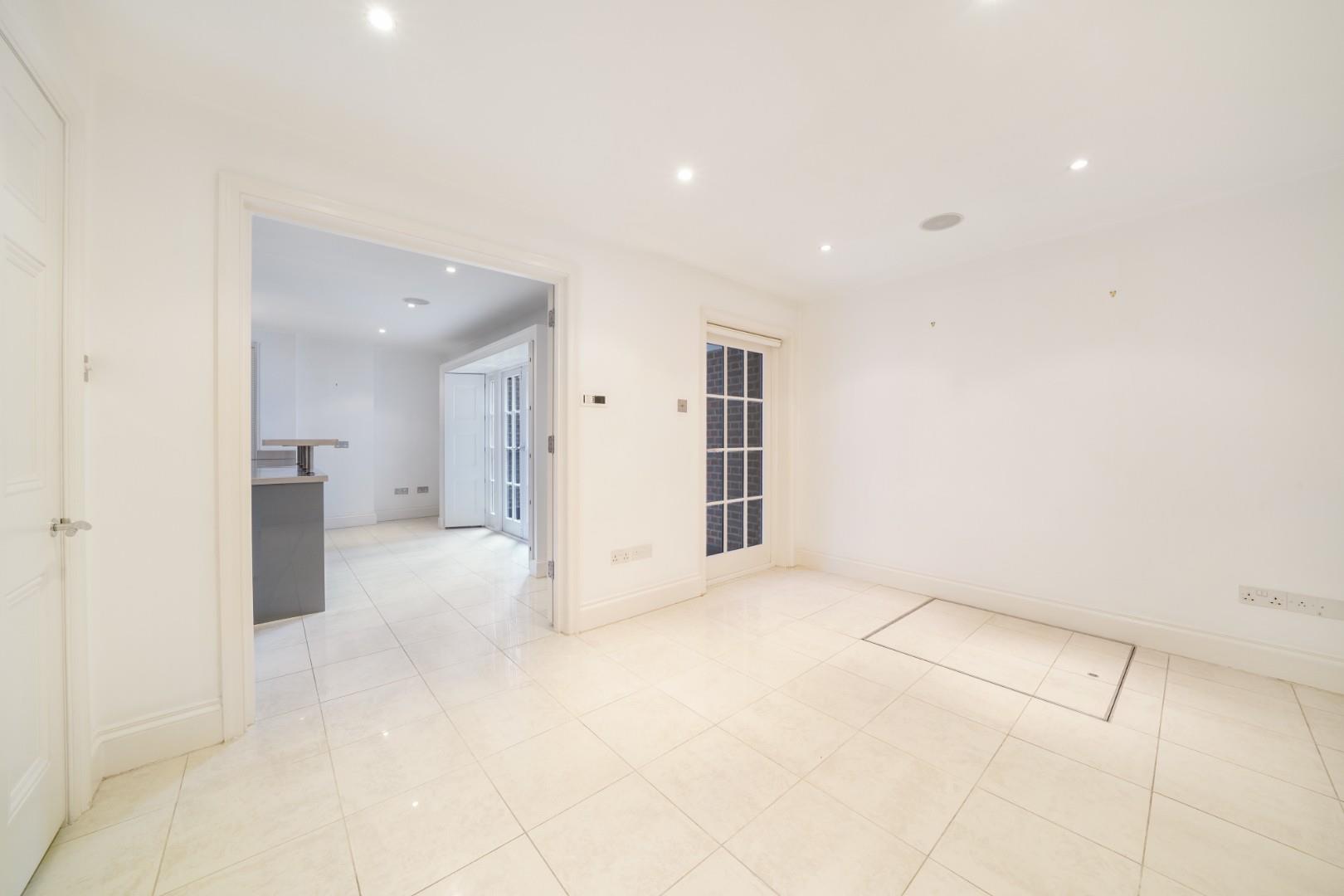 The lower ground floor features a bright open-plan kitchen and dining room with direct access to a secluded patio garden.