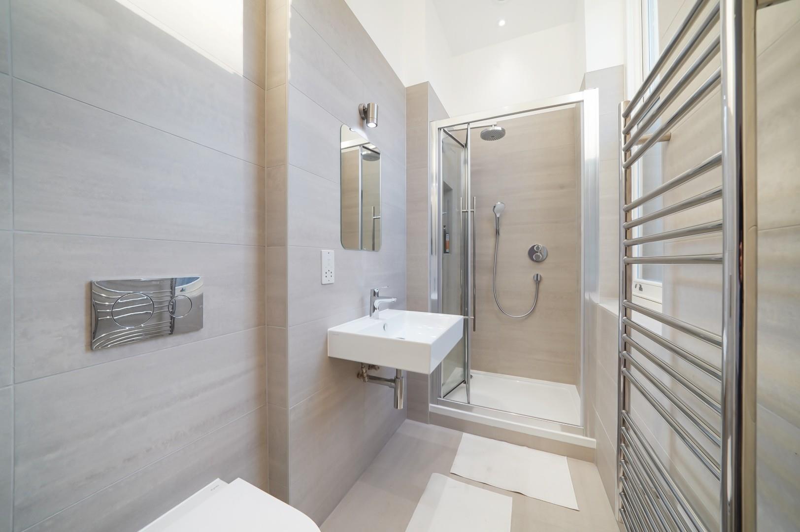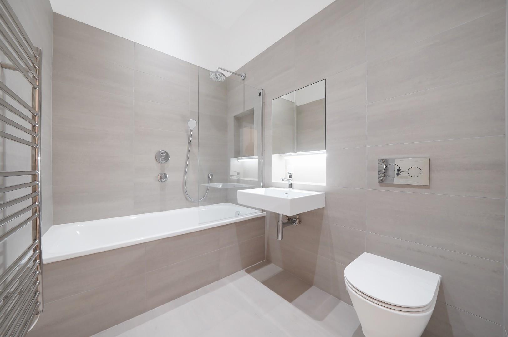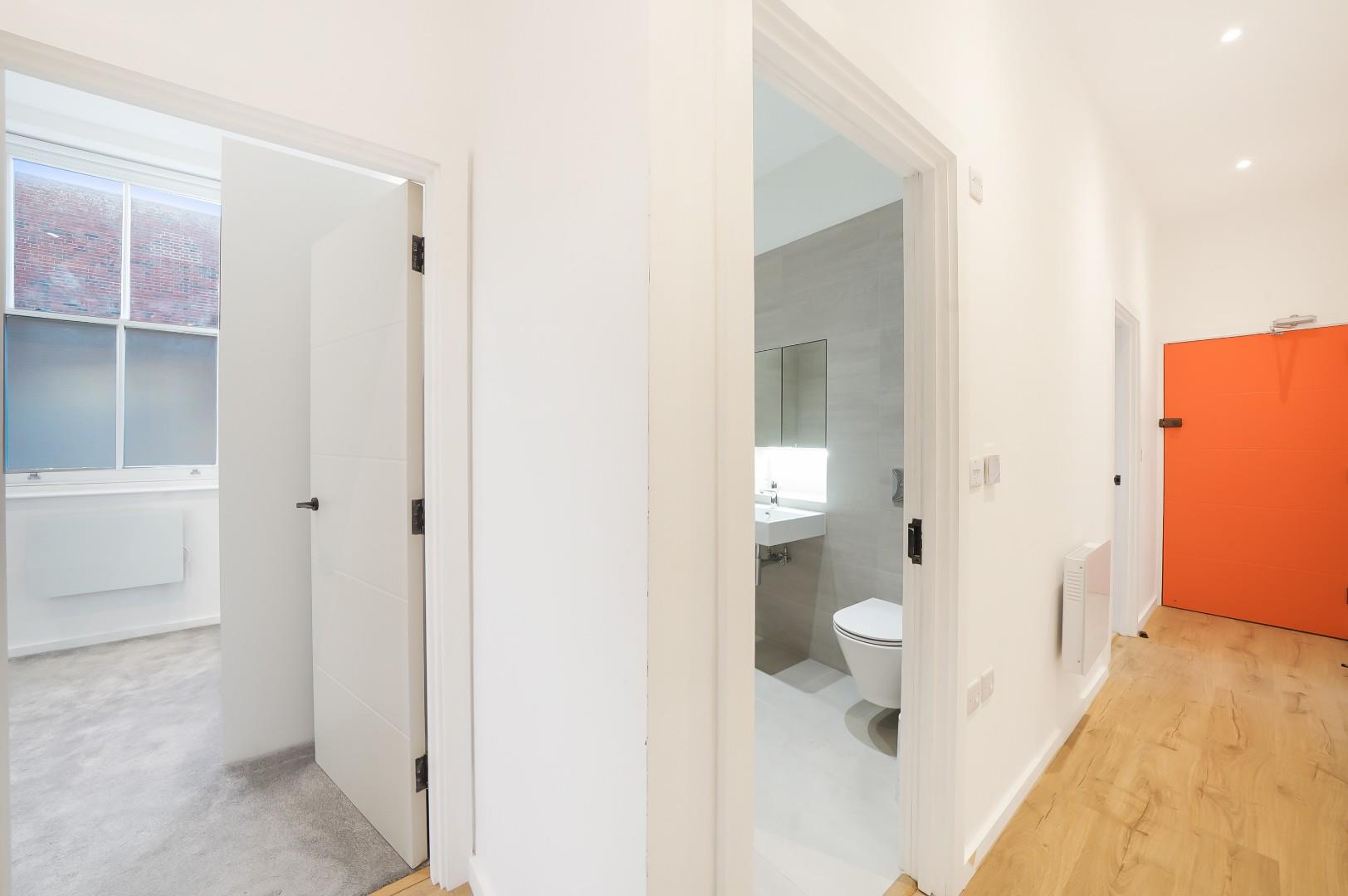 The property has been recently developed and offers its residents, two large bedrooms with no adjoining wall, the main bedroom has an en suite shower room, and both bedrooms have built in wardrobe space. There is a large bathroom (with tub) and built in storage in the hallway.