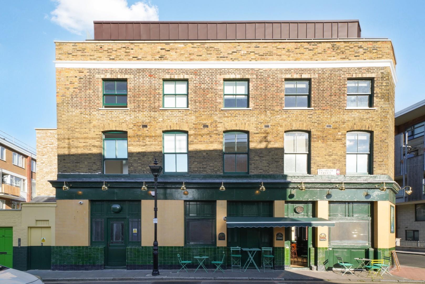 The reception/kitchen is open plan, South facing and overlooks the corner of Dunelm Street and Aylward Street.
