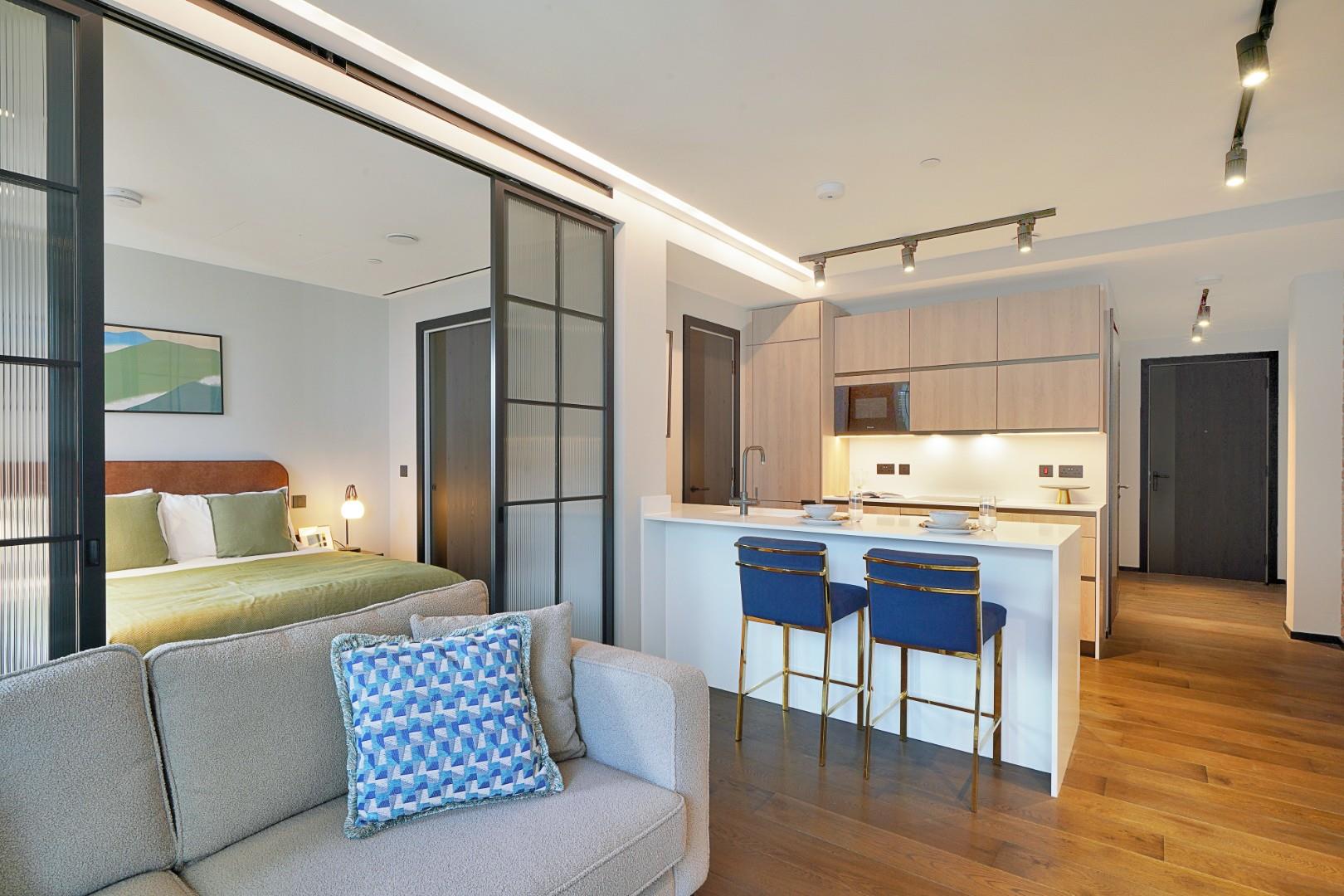Tucked behind the buzz of Shoreditch High Street, The Stage sets a new benchmark for modern luxury. With interiors by Argent Design and standout detailing, from brick-effect walls to bronze accents and Crittall-style doors, every apartment blends urban character with effortless elegance. Open-plan layouts and skyline views complete the picture.