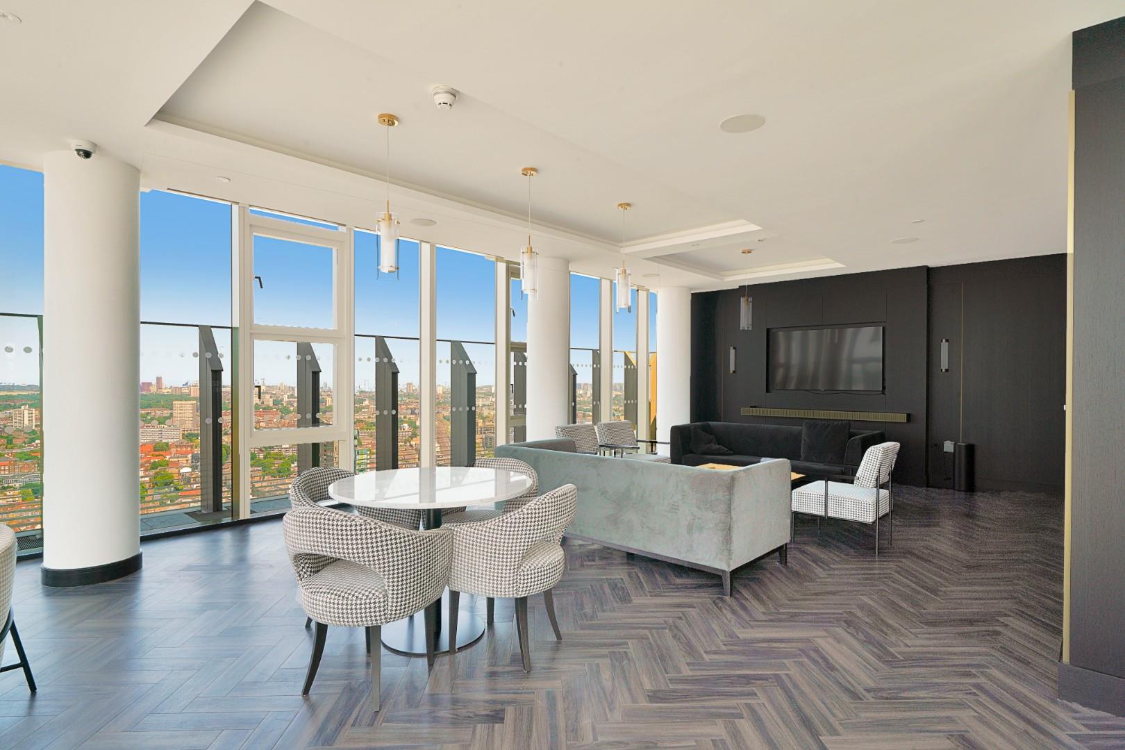 A 32nd-floor sky lounge and rooftop terrace with sweeping London views, yours to enjoy, and impress your guests with (available for private hire, upon request).