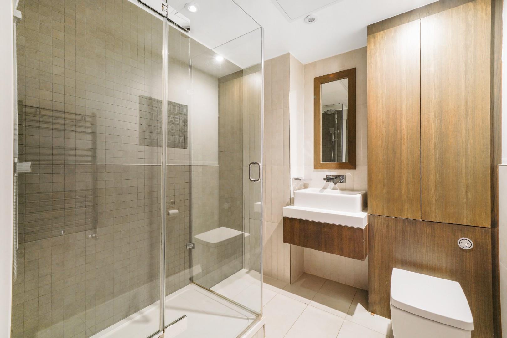 There is one main bathroom, with a double shower and ample storage is accessed from the lounge.