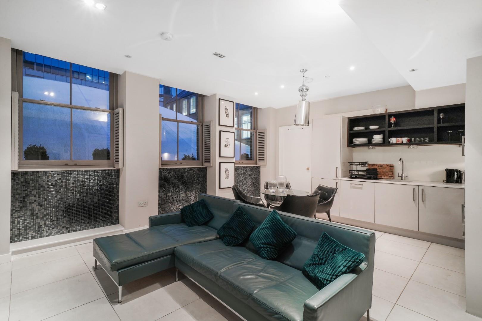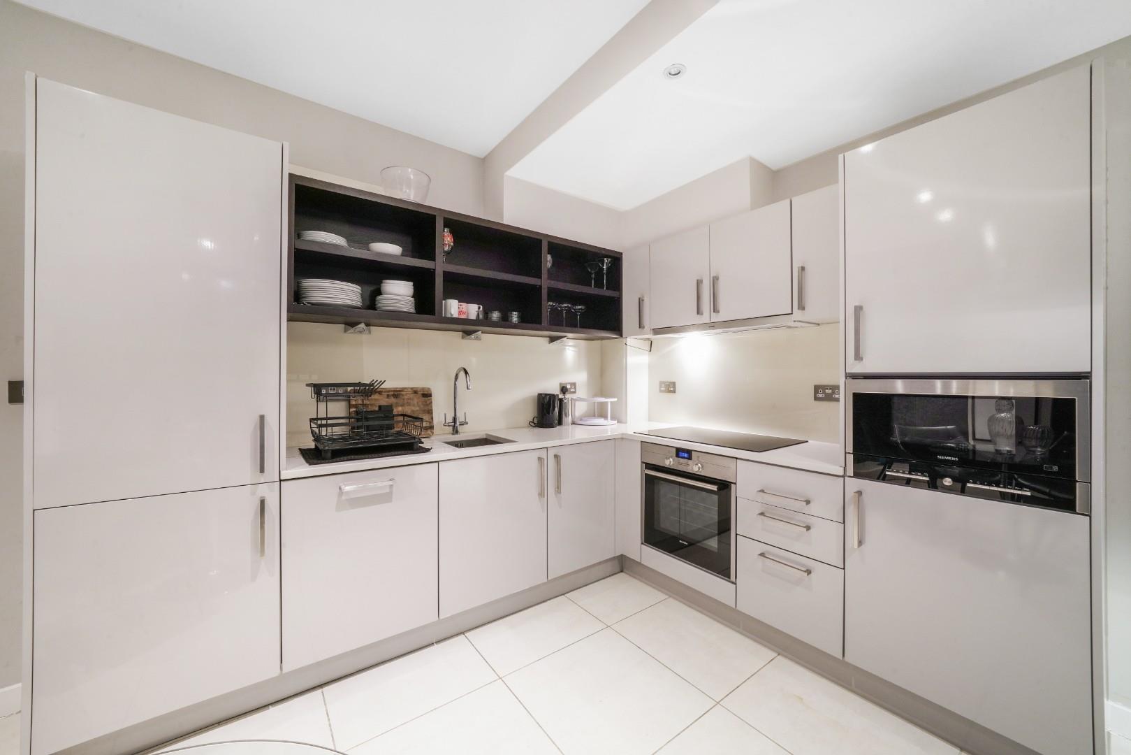 The property comprises two even sized bedrooms, one at each side of the property, with views internally (none road facing) The lounge is open plan to the L shaped fully integrated kitchen which is spacious and offers versatile living for the city professional.