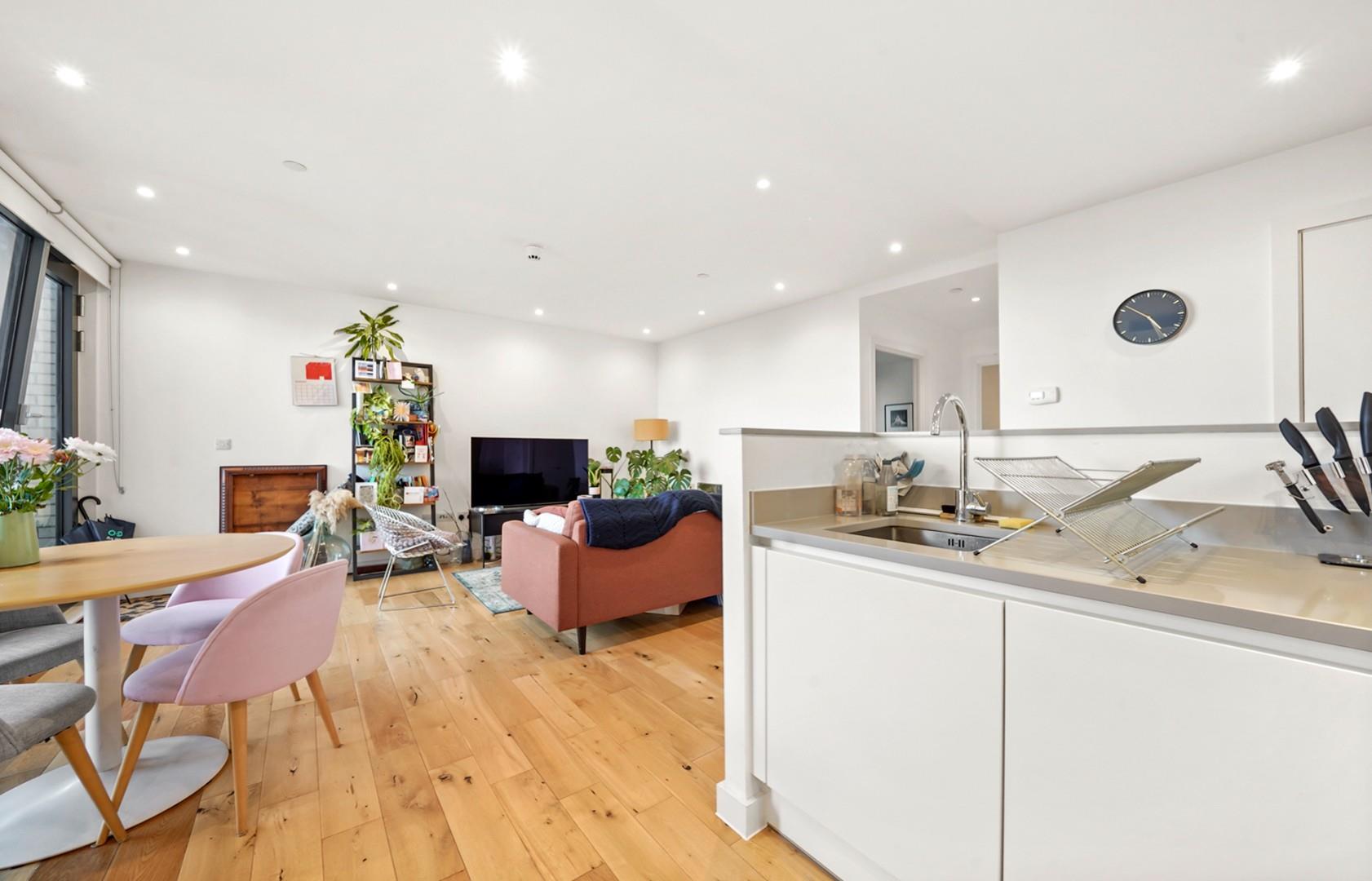 Featuring two balconies, one privately accessed via the main bedroom which overlooks Palmers Road, complete with its own en suite, and the other is accessible via the generous open plan reception kitchen, which overlooks Regents Canal and Mile End Park. A further double bedroom and main bathroom make up the remainder of the apartment. This residence is equipped with all the high-end modern conveniences including a fully integrated kitchen, convenient built in storage. The block boasts a residents lift and is located on this no through road, with Victoria Park being moments away.