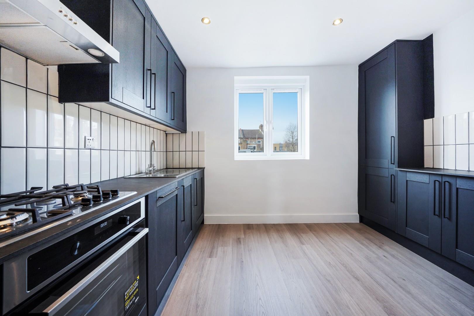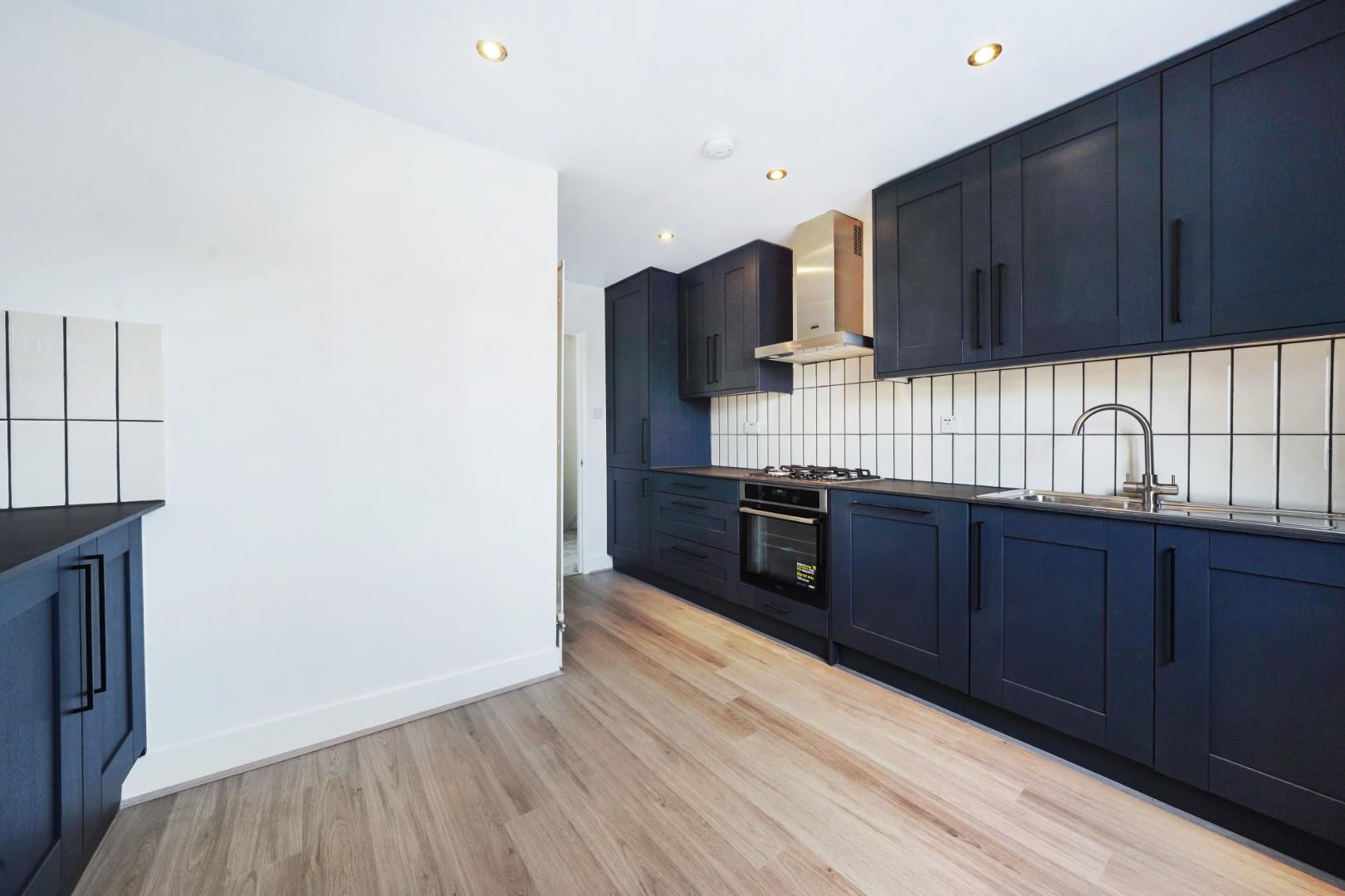 To the rear of the apartment you’ll find the newly installed eat in kitchen, all the appliances are integrated and there is ample room for a dining table.