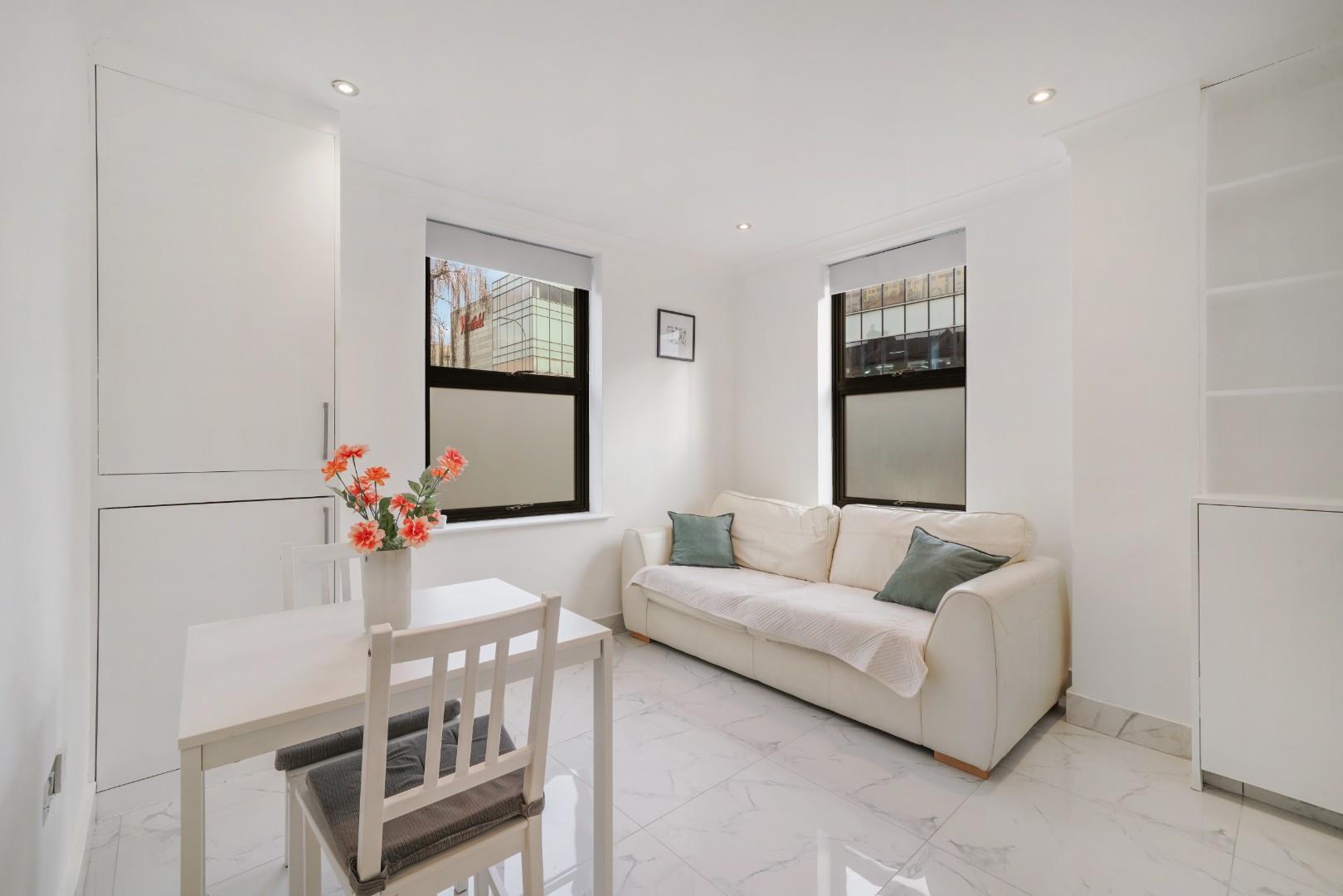 Occupying part of the ground floor of this corner dwelling, is this large studio apartment.