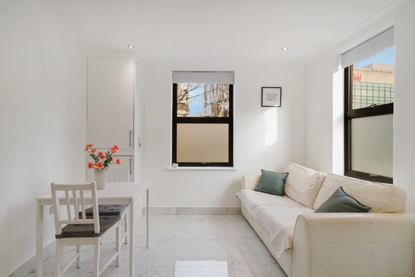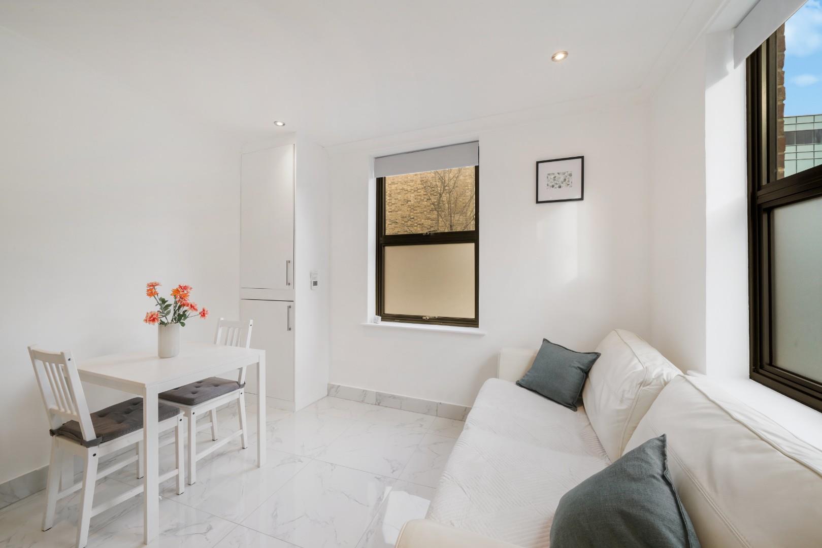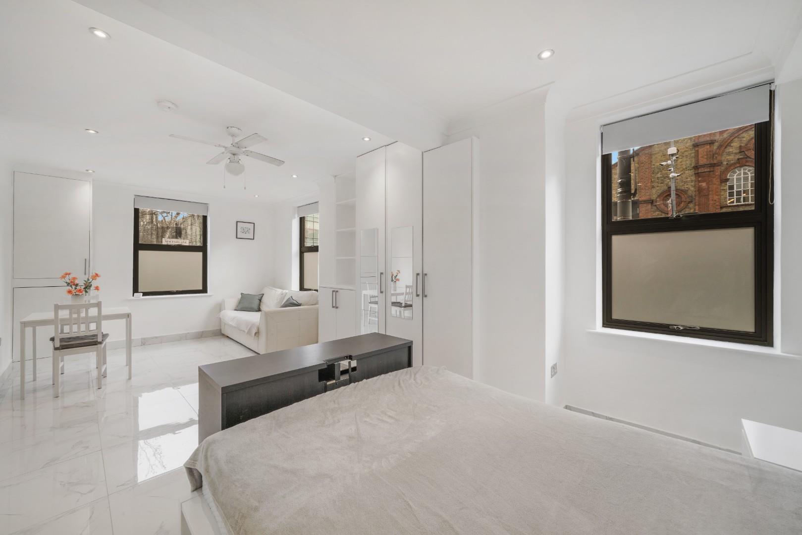 Occupying part of the ground floor of this corner dwelling, is this large studio apartment.